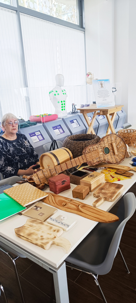 ЦРС ВОС также представил выставку лучших работ слушателей в компетенциях: лозоплетение, резьба по дереву, плетение из искусственного ротанга, переплетное дело, то есть те профессии, которые потенциально могут быть востребованы ребятами-участниками СВО.